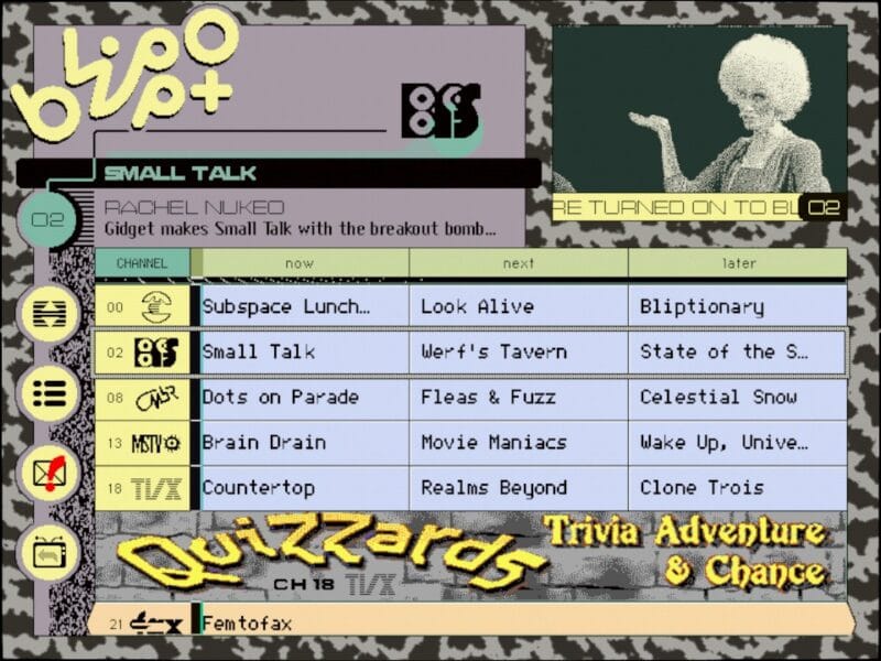I’ve always had a love of full-motion video in gaming, and the words “weird FMV game” have perhaps never applied more than they do to Blippo+. You can have that weird sense of discovery as you flip through a list of unfamiliar and slightly foreign TV channels any time! No surprise at all it’s from Panic, a think tank of gaming weirdos previously disguised as a Mac shareware company.