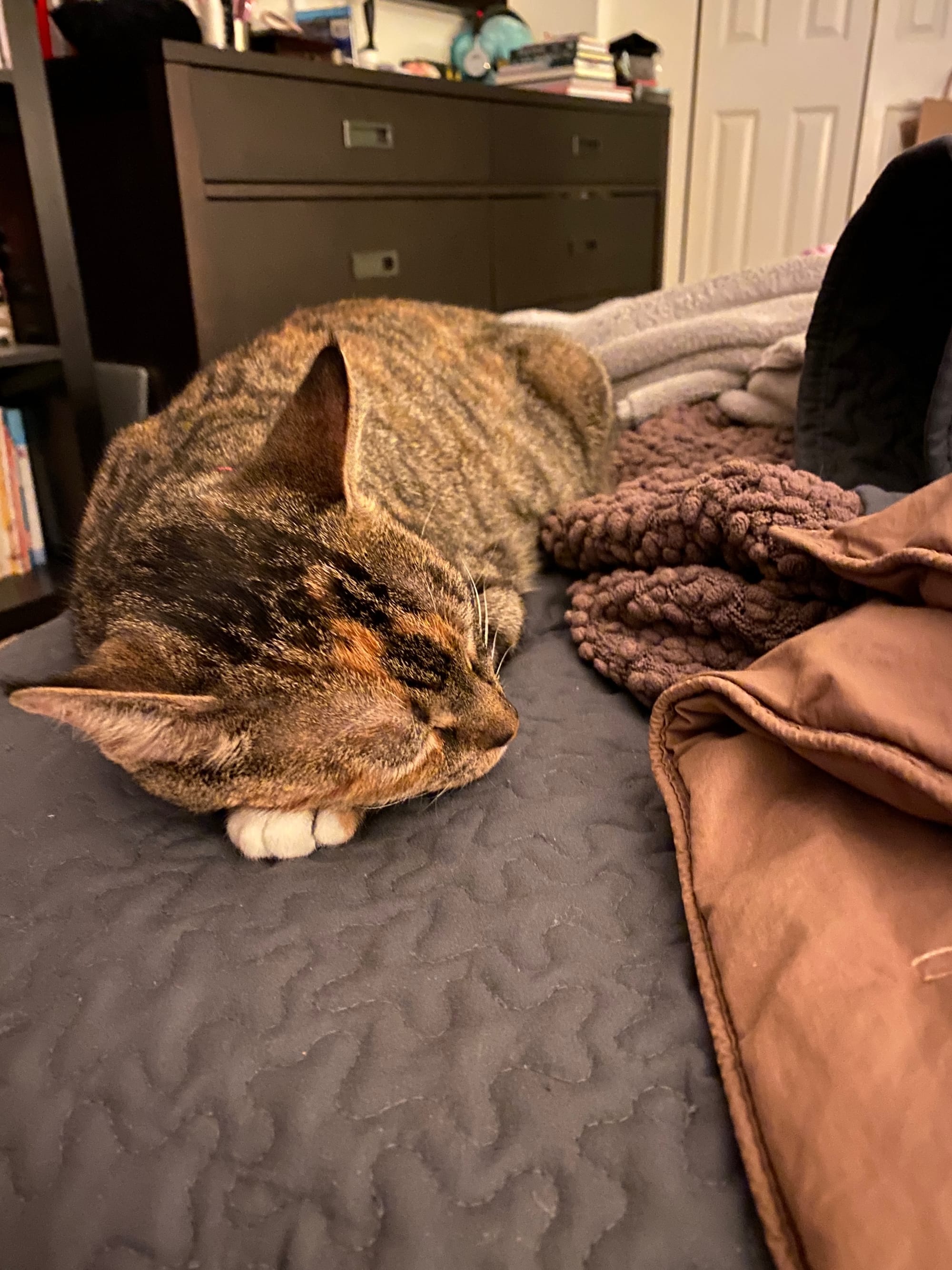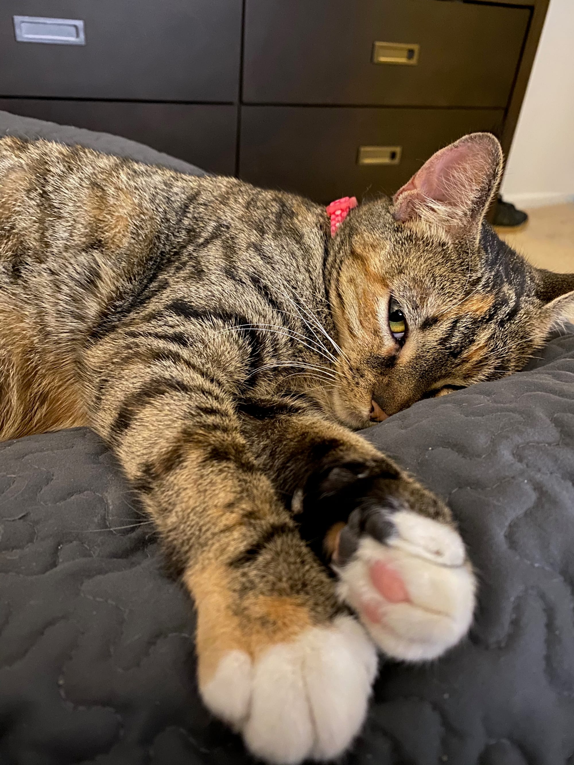 Wanted to introduce everyone to the newest member of our family, Katsu. She’s one year old, has already experienced life as a young cat mom, and loves cuddling and being silly in equal parts.