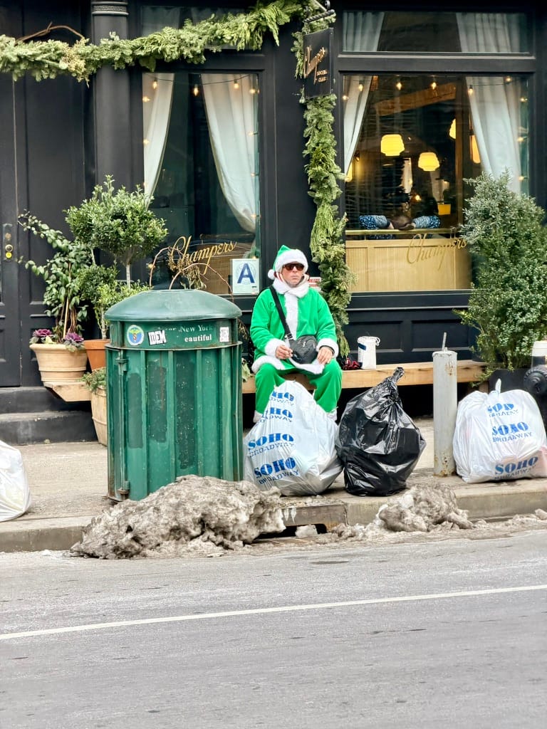 We have ourselves a shakedown.Starting the year as best one canSantacon jokes go hereLife lessonsUpper East Side “amenities”No Jericho, no problemHoly cannoliSitting outside the Lego store on a Tito’s box at 8:25 AMSanty ClawsI-poots & K-stewDim sum, but make it cute as hellWearing a Suit to Paul’s Da Burger Joint"El spice bag"Normal service on the 1 trainSnowy scenes in a Chinese restaurant.Developing a taste for MollySorry, Mom.No lonely nuggetsWhat if we kissed under the large structure made of lobster traps?🤘
