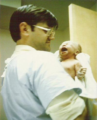 Last night, my mother decided to scan the first photo ever taken of me, being held by my father and screaming shortly after my birth. This morning, I asked Katie to take a new portrait of me. (I tend to reuse the same picture of myself everywhere online for years at a time, and the old one was getting long in the tooth.)
