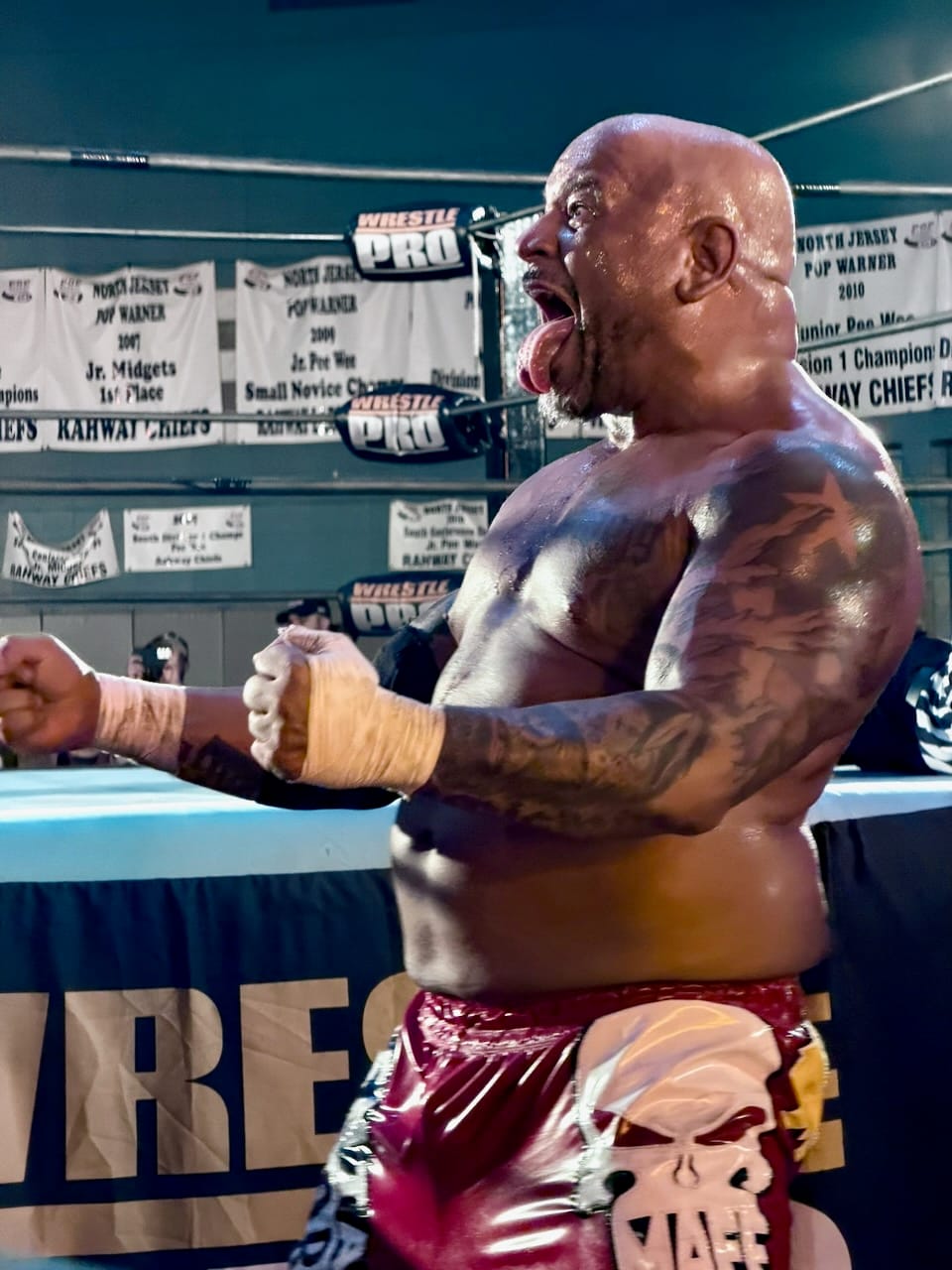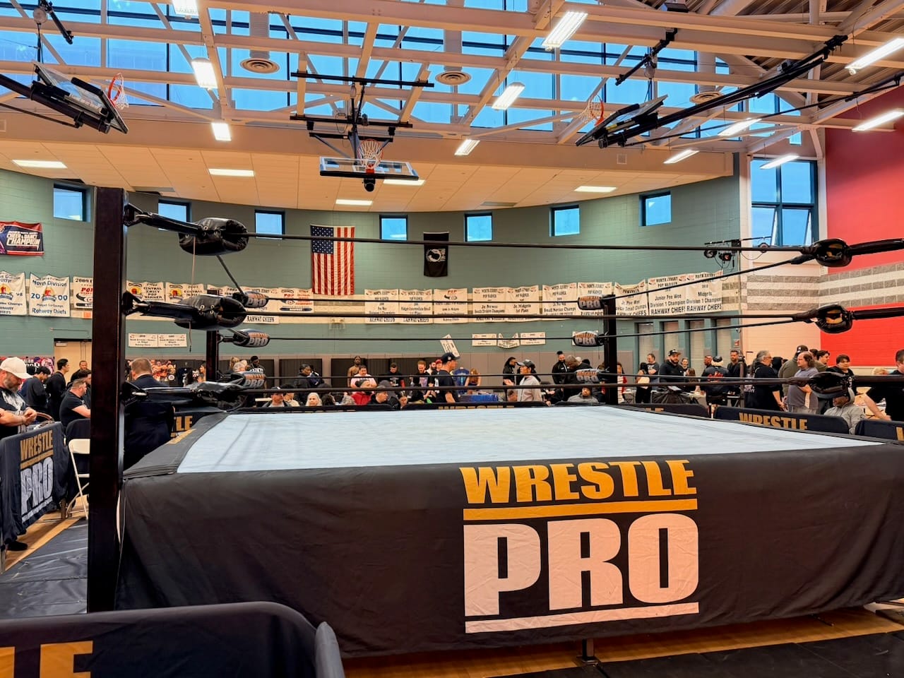Rahway would be the spot to close out my triple show week, letting me trade the vast space of the World's Most Famous Arena for the Rahway Recreation Center, a modest house of independent wrestling history. New Japan, Ring of Honor, and Chikara have all run here over the years; lately, it's the regular home to WrestlePro, a modest little indie that's been grinding away for 10 years and creating a handful of stars that have gone on to bigger promotions.